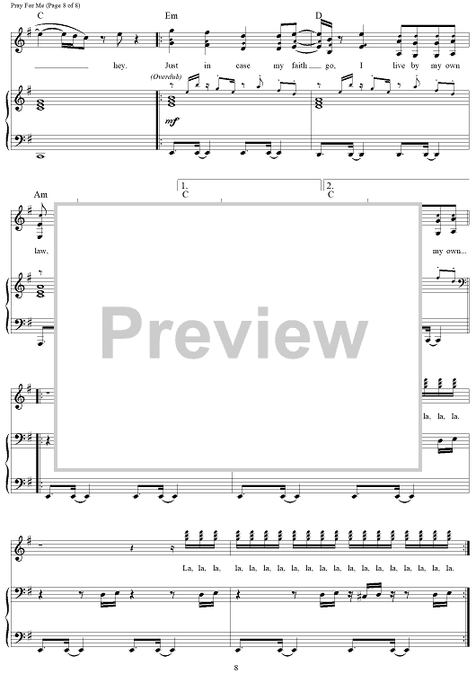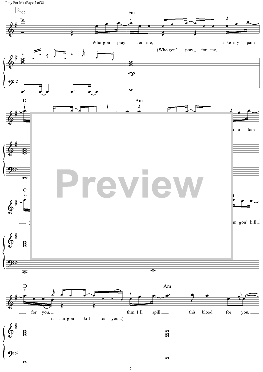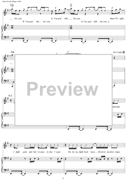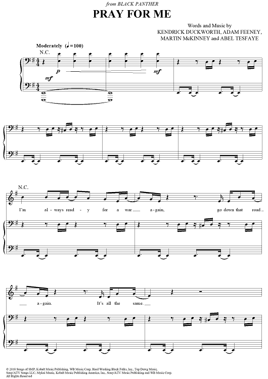 Digital Sheet Music for Pray For Me - from Black Panther by Abel Tesfaye, Martin McKinney, Adam Feeney, Kendrick Duckworth scored for Piano/Vocal/Chords; id:466129
