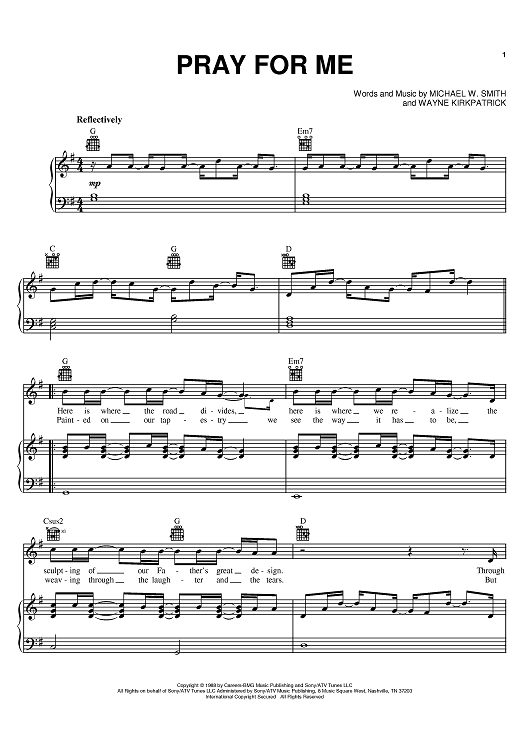 Digital Sheet Music for Pray For Me by Michael W. Smith, Wayne Kirkpatrick scored for Piano/Vocal/Chords; id:395075