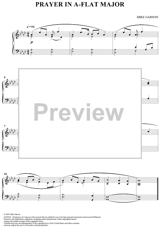 Digital Sheet Music for Prayer in A-flat Major by Mike Garson scored for Piano Solo; id:315368