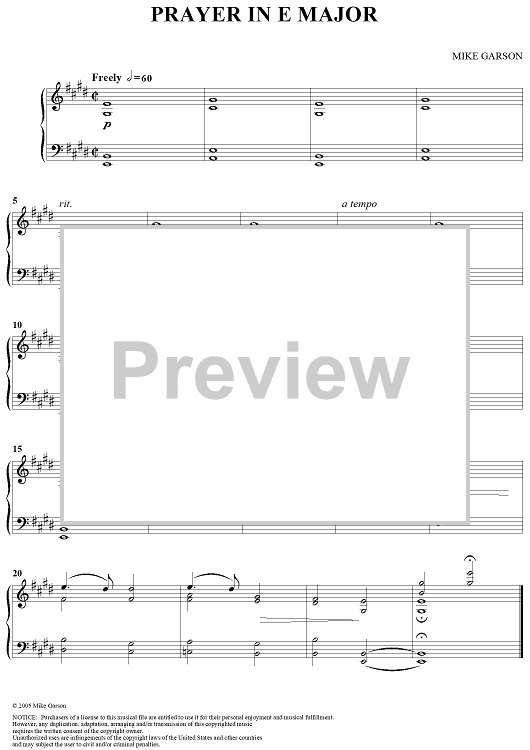 Digital Sheet Music for Prayer in E Major by Mike Garson scored for Piano Solo; id:315360
