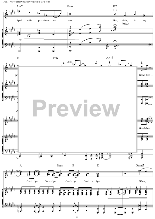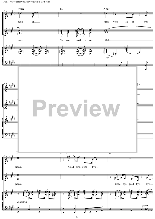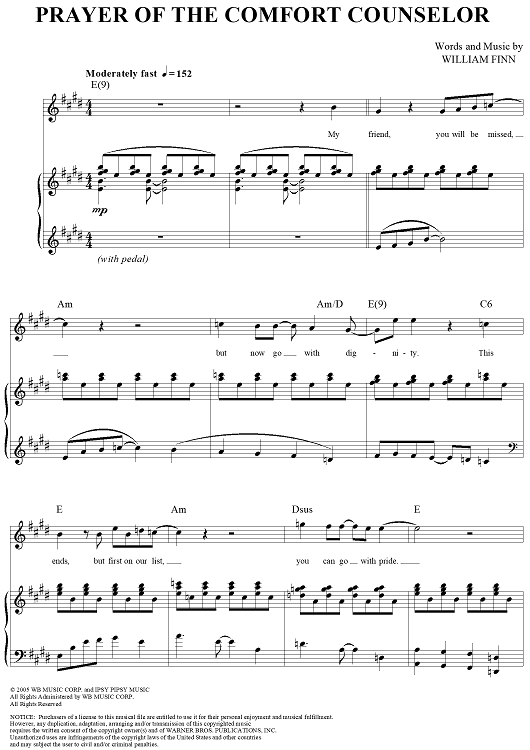 Digital Sheet Music for Prayer of the Comfort Counselor by William Finn scored for Piano/Vocal/Chords; id:317821