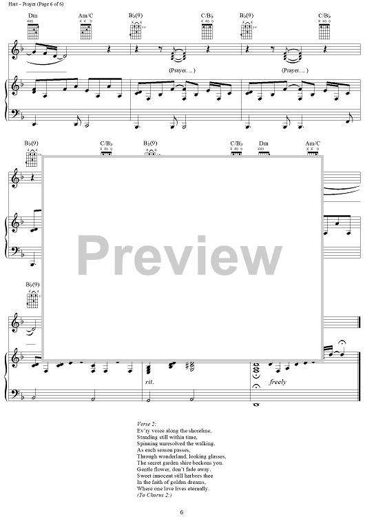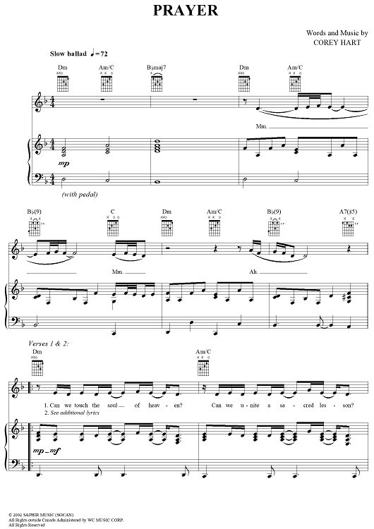 Digital Sheet Music for Prayer by Celine Dion, Corey Hart scored for Piano/Vocal/Chords; id:290109