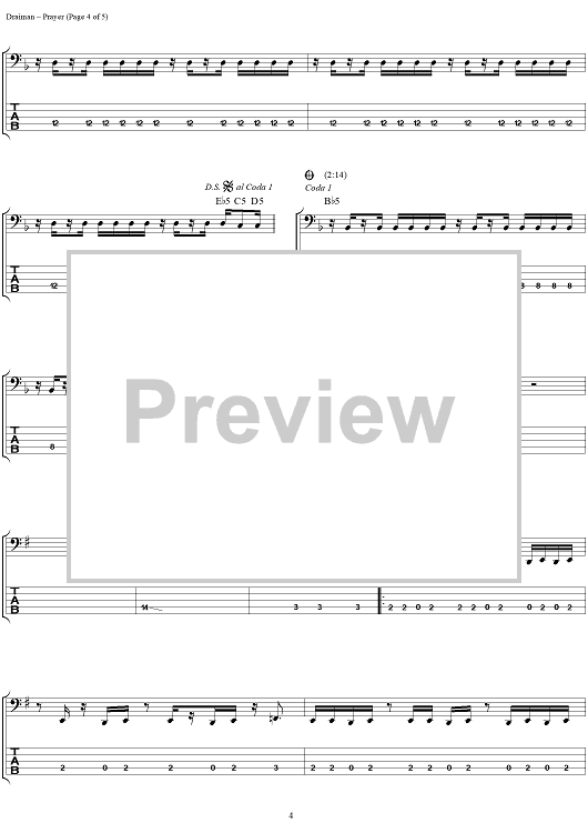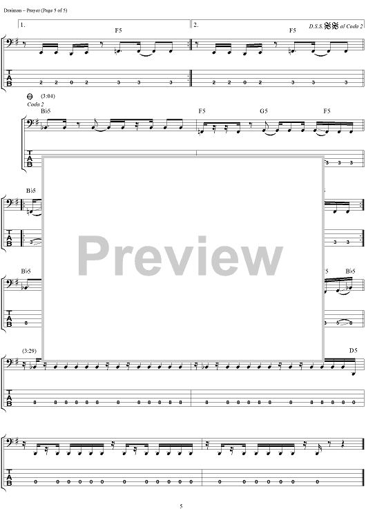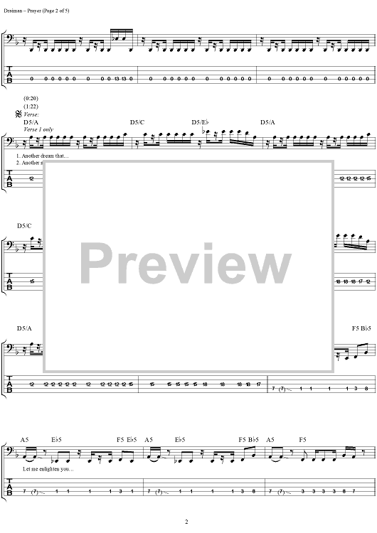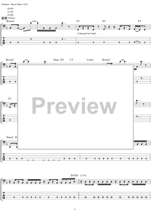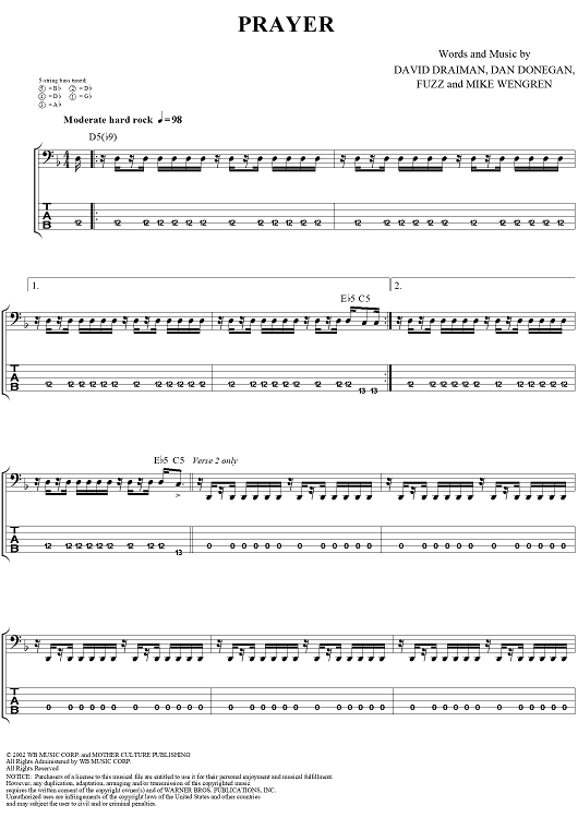 Digital Sheet Music for Prayer by Disturbed, Mike Wengren, Dan Donegan, Fuzz, David Draiman scored for Bass Tab; id:294086