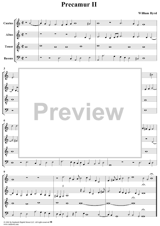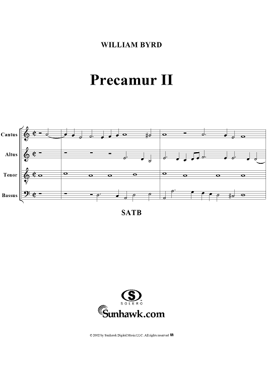 Digital Sheet Music for Precamur II by William Byrd scored for Four-Part Mixed Chorus; id:273545