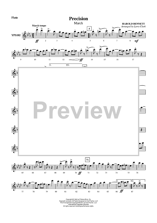 Digital Sheet Music for Precision (March) - Flute by Larry Clark, Harold Bennett scored for Concert Band; id:420899