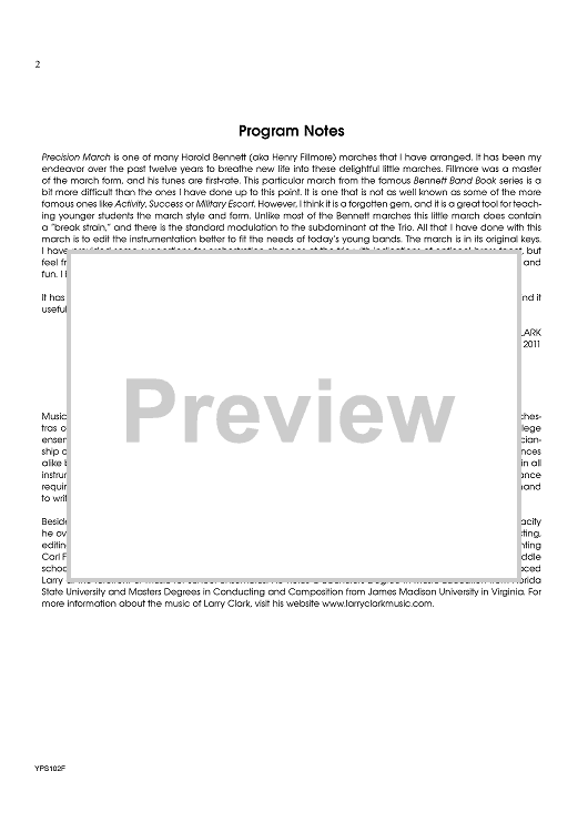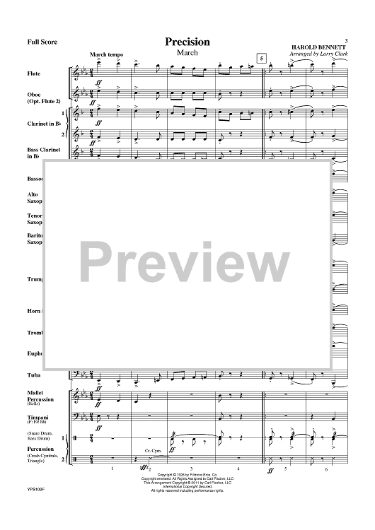 Digital Sheet Music for Precision (March) - Score by Larry Clark, Harold Bennett scored for Concert Band; id:420898