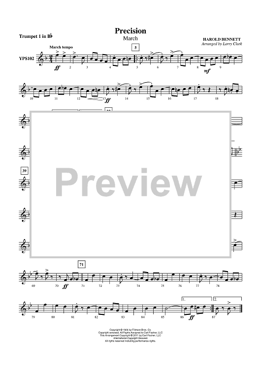 Digital Sheet Music for Precision (March) - Trumpet 1 in Bb by Larry Clark, Harold Bennett scored for Concert Band; id:420908