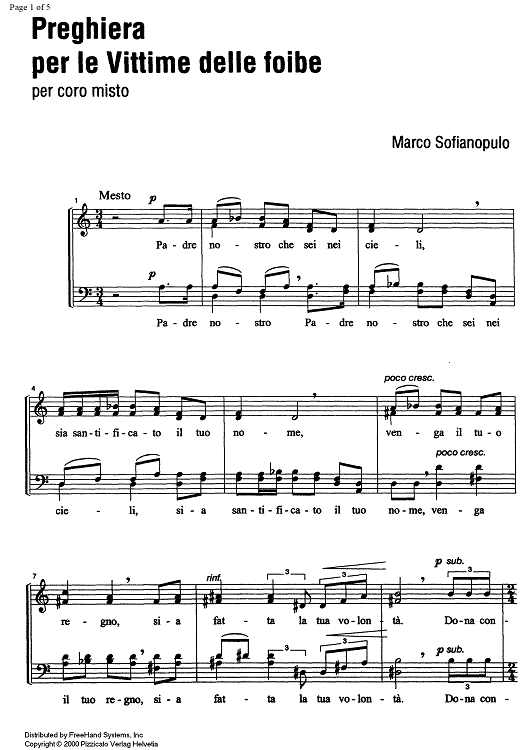 "Preghiera per le Vittime delle foibe" Sheet Music by Marco Sofianopulo