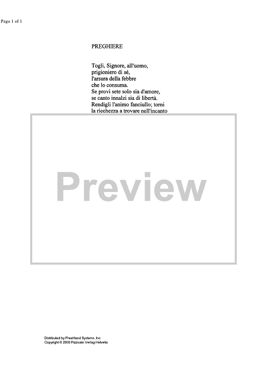 "Preghiere (Prayers) - Lyrics" Sheet Music by Renato Grisoni
