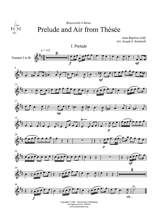 Digital Sheet Music for Prelude and Air from Thesee - Trumpet 2 in B-flat by Jean-Baptiste Lully, Joseph S. Kaminski scored for Brass Quintet; id:410833