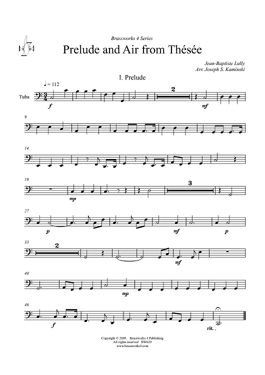 Digital Sheet Music for Prelude and Air from Thesee - Tuba by Jean-Baptiste Lully, Joseph S. Kaminski scored for Brass Quintet; id:410836