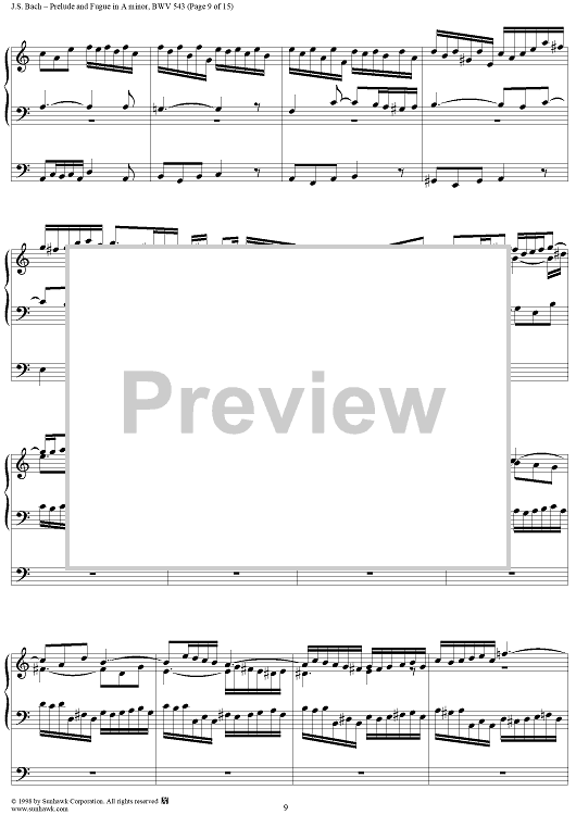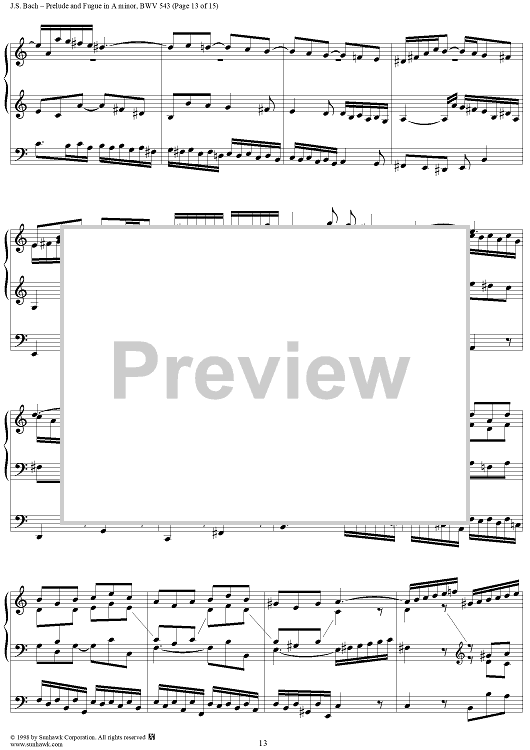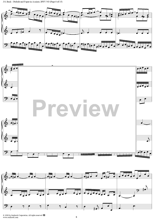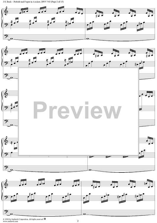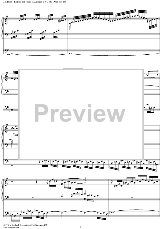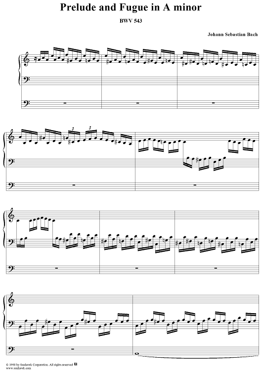 Digital Sheet Music for Prelude and Fugue in A Minor, BWV543 by Johann Sebastian Bach scored for Organ Solo; id:319349
