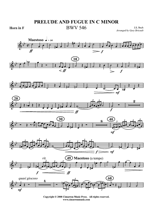 "Prelude and Fugue in C Minor, BWV 546 - Horn in F" Sheet Music by Johann Sebastian Bach