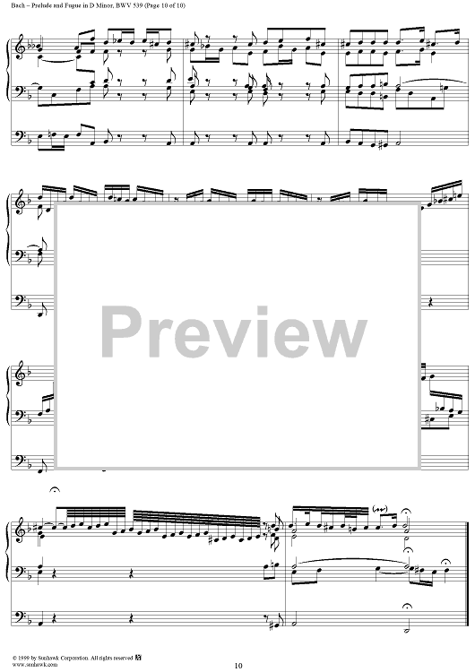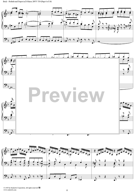 Digital Sheet Music for Prelude and Fugue in D Minor ("Fiddle Fugue"), BWV539 by Johann Sebastian Bach scored for Organ Solo; id:319112