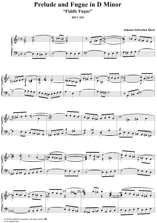 "Prelude and Fugue in D Minor ("Fiddle Fugue"), BWV539" Sheet Music by Johann Sebastian Bach