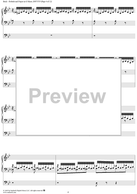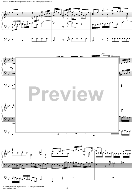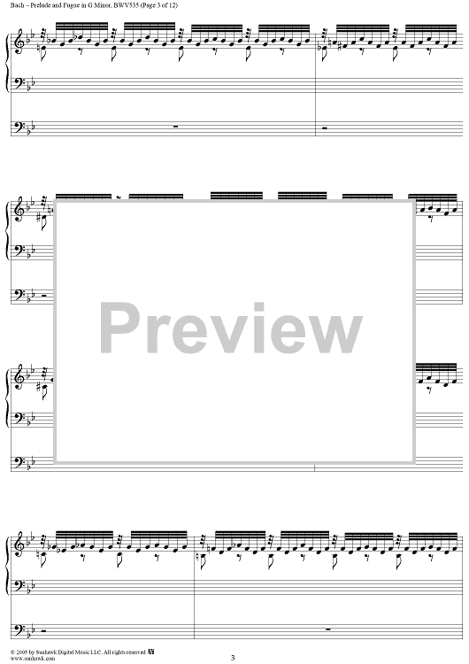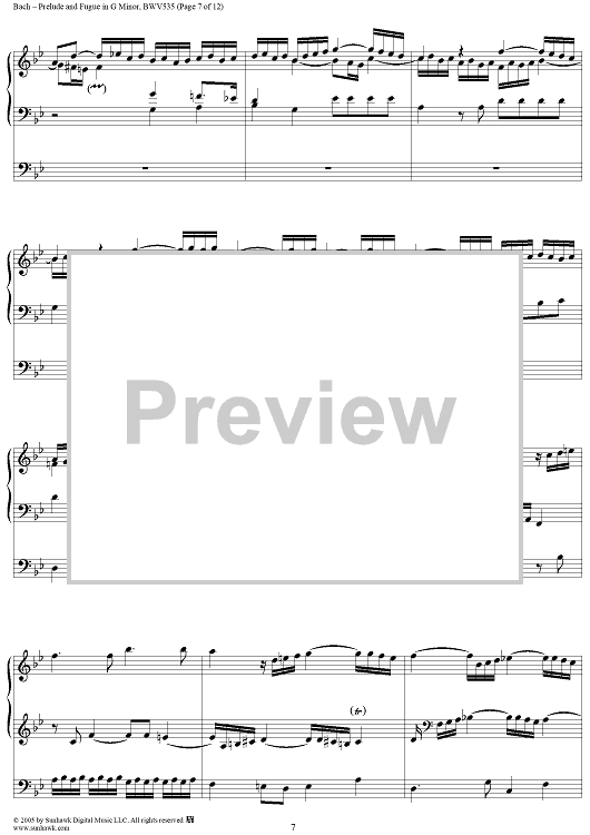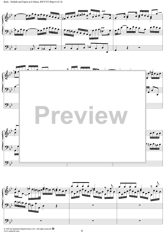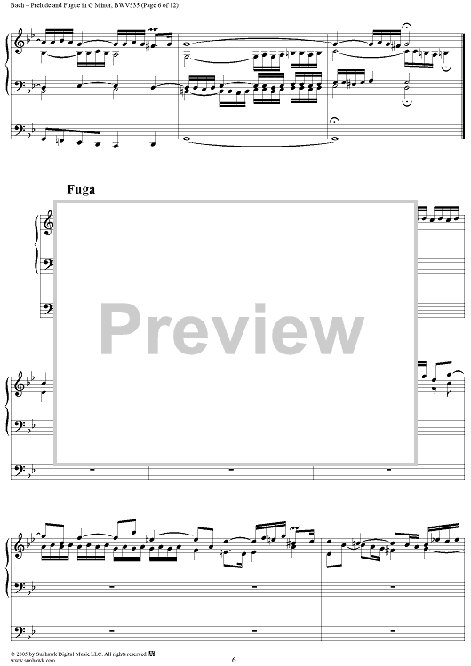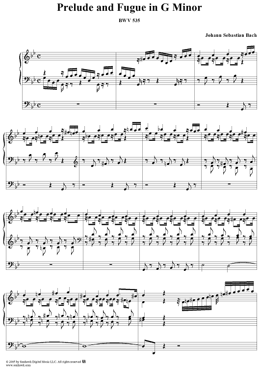 Digital Sheet Music for Prelude and Fugue in G Minor, BWV535 by Johann Sebastian Bach scored for Organ Solo; id:319499