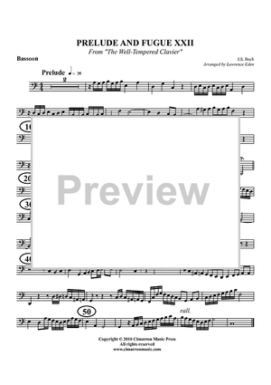 "Prelude and Fugue XXII - Bassoon" Sheet Music by Johann Sebastian Bach