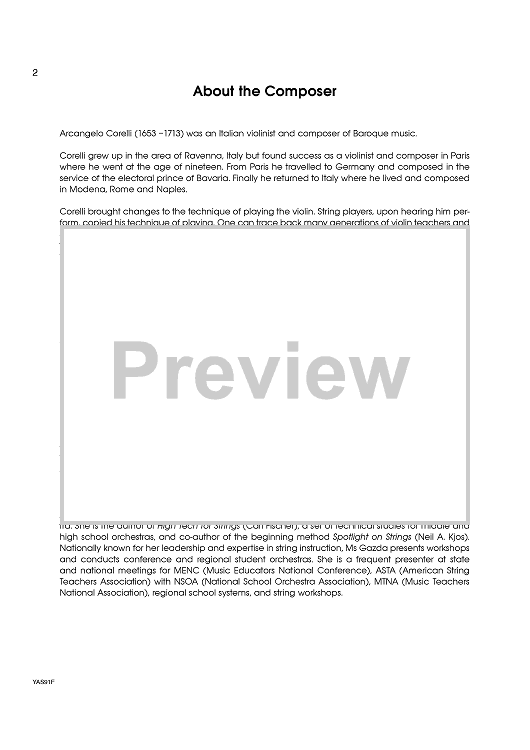 Digital Sheet Music for Prelude and Gavotte - Score by Arcangelo Corelli, Doris Gazda scored for Orchestra; id:419056