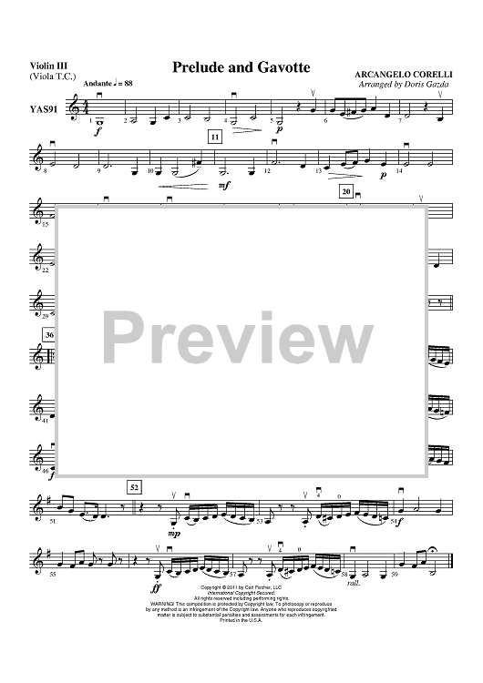 Digital Sheet Music for Prelude and Gavotte - Violin 3 (Viola T.C.) by Arcangelo Corelli, Doris Gazda scored for Orchestra; id:419059