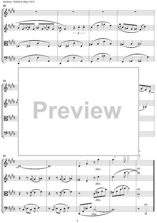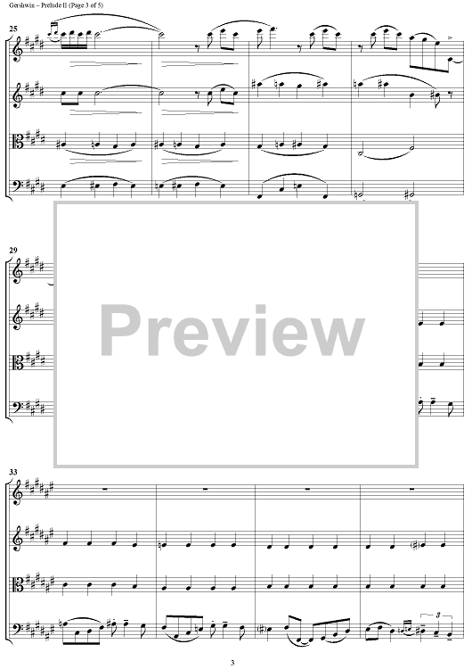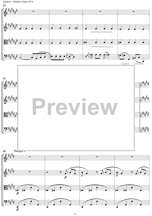 Digital Sheet Music for Prelude II - Score by George Gershwin, Tony Esposito scored for String Quartet; id:316516