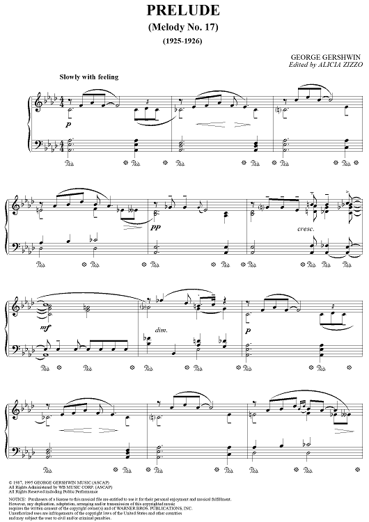 Digital Sheet Music for Prelude in A-flat Major by George Gershwin, Alicia Zizzo scored for Piano Solo; id:119946