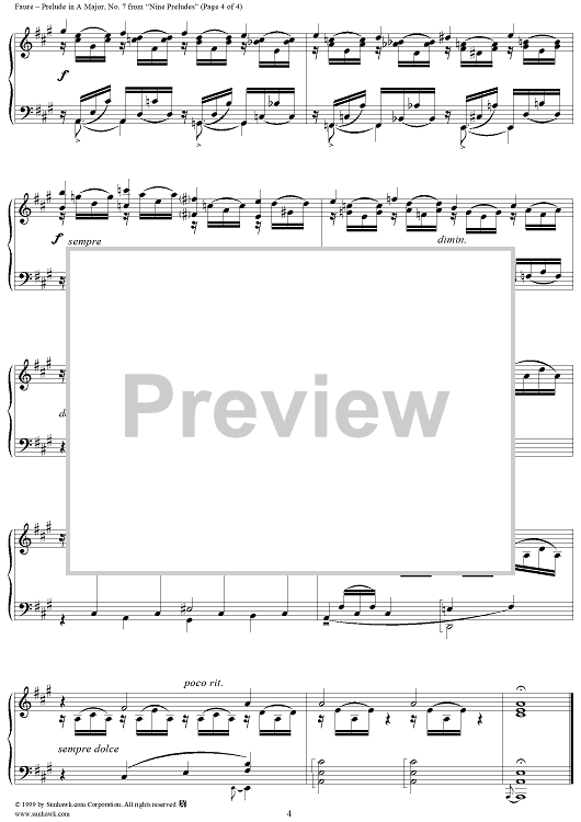 Digital Sheet Music for Prelude in A major - No. 7 from "Nine Preludes" op. 103 by Gabriel Fauré scored for Piano Solo; id:271581