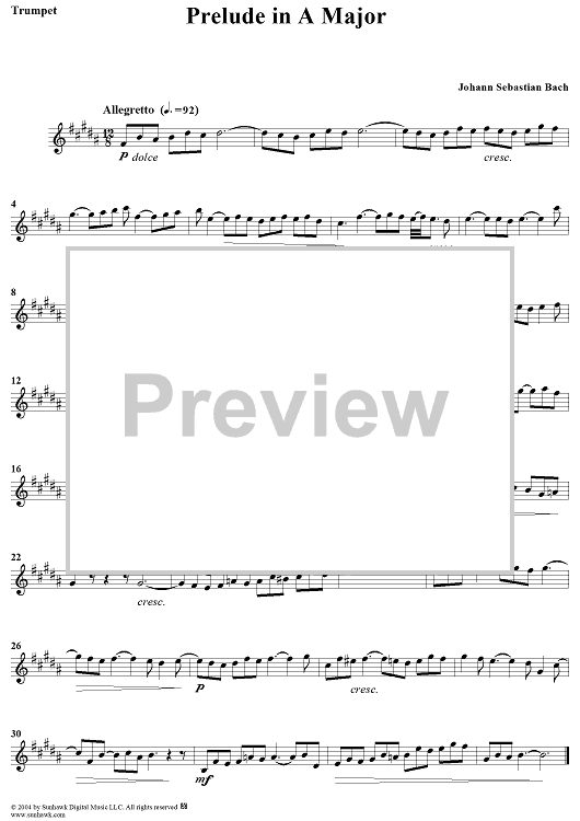 Digital Sheet Music for Prelude in A Major - Trumpet by Johann Sebastian Bach scored for Trumpet/Piano; id:303758