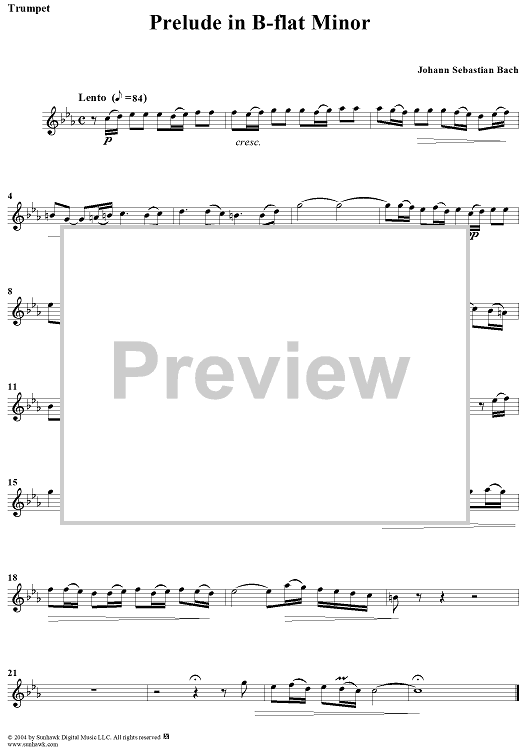Digital Sheet Music for Prelude in B-flat Minor - Trumpet by Johann Sebastian Bach scored for Trumpet/Piano; id:303755