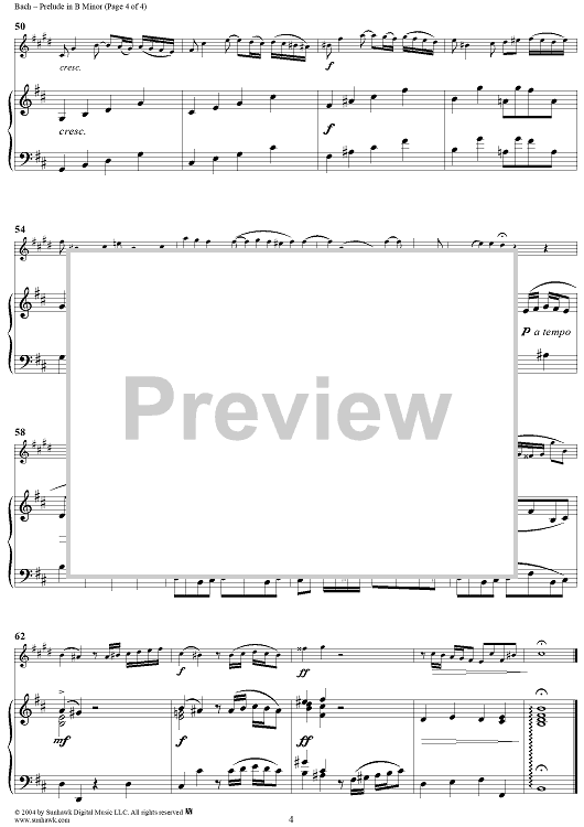 Digital Sheet Music for Prelude in B Minor - Piano by Johann Sebastian Bach scored for Trumpet/Piano; id:303743