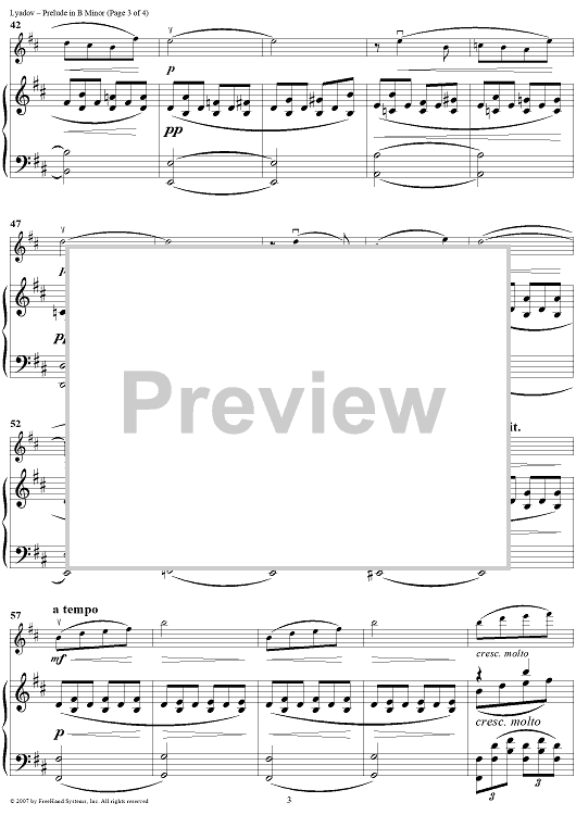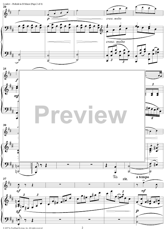 "Prelude in B Minor - Piano Score" Sheet Music by A. Lyadov