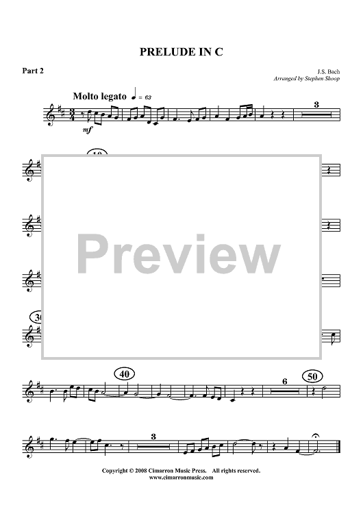 Digital Sheet Music for Prelude in C - Euphonium 2 BC/TC by Stephen Shoop, Johann Sebastian Bach scored for Tuba Ensemble; id:416810