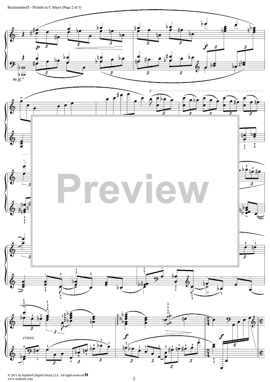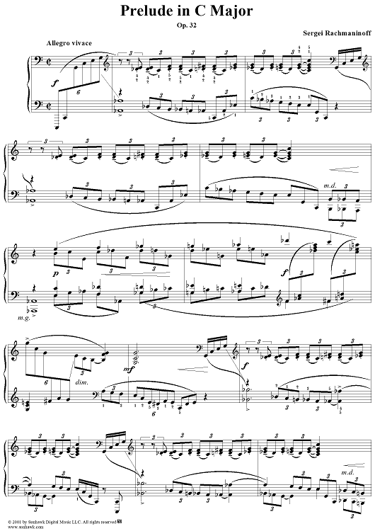 Digital Sheet Music for Prelude in C major, Op. 32, No. 1 by Sergei Rachmaninoff scored for Piano Solo; id:255194