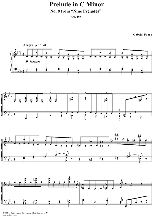 "Prelude in C minor - No. 8 from "Nine Preludes" op. 103" Sheet Music by Gabriel Fauré