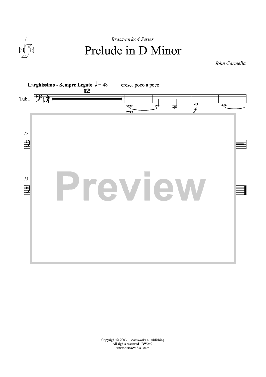 "Prelude in D minor - Tuba" Sheet Music by John Carmella