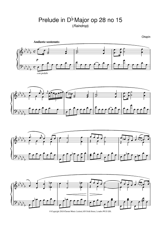 "Prelude in Db Major op 28 no 15" Sheet Music by Frederic Chopin
