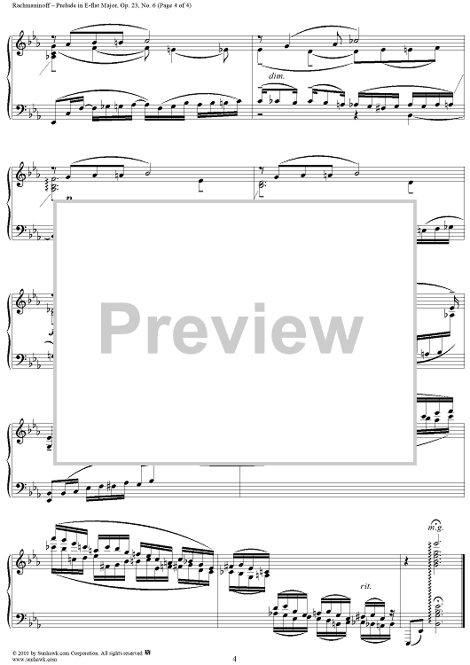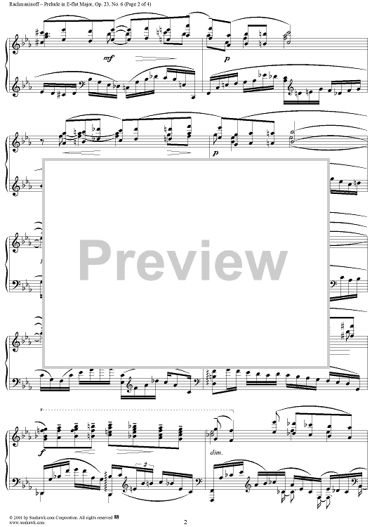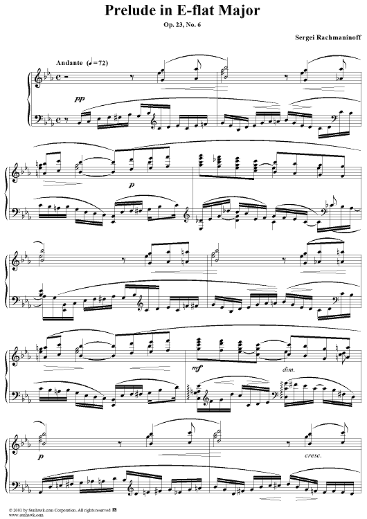 Digital Sheet Music for Prelude in E-flat Major, Op. 23, No. 6 by Sergei Rachmaninoff scored for Piano Solo; id:255591