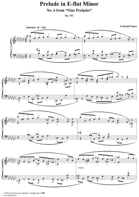 Digital Sheet Music for Prelude in E-flat minor - No. 6 from "Nine Preludes" op. 103 by Gabriel Fauré scored for Piano Solo; id:271550