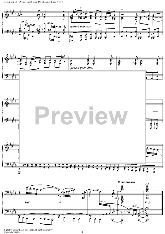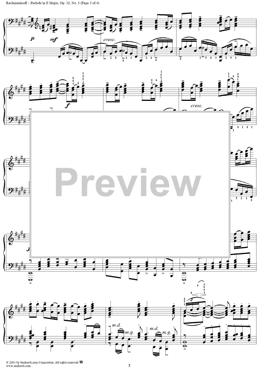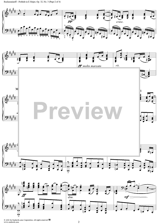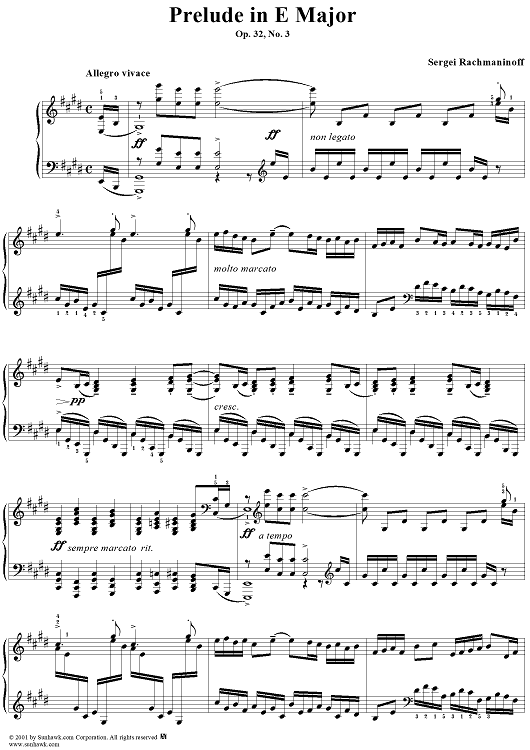 Digital Sheet Music for Prelude in E Major, Op. 32, No. 3 by Sergei Rachmaninoff scored for Piano Solo; id:255178