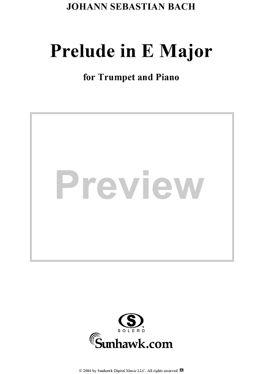 Digital Sheet Music for Prelude in E Major - Piano by Johann Sebastian Bach scored for Trumpet/Piano; id:303750