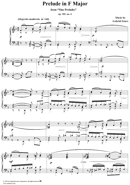 "Prelude in F major - No. 4 from "Nine Preludes" op. 103" Sheet Music by Gabriel Fauré