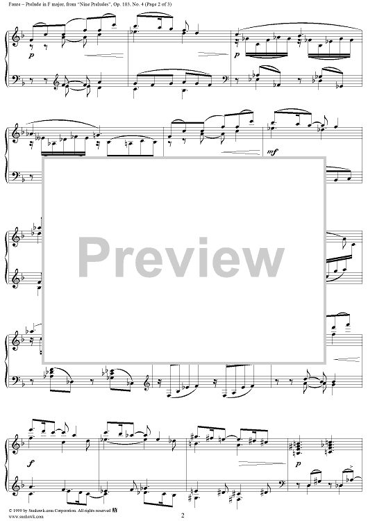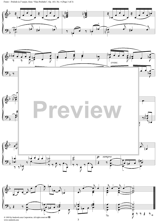 Digital Sheet Music for Prelude in F major - No. 4 from "Nine Preludes" op. 103 by Gabriel Fauré scored for Piano Solo; id:271552