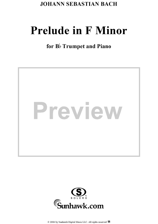 Digital Sheet Music for Prelude in F Minor - Piano by Johann Sebastian Bach scored for Trumpet/Piano; id:303751