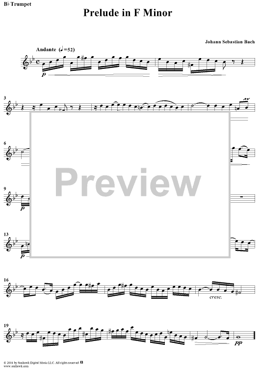 Digital Sheet Music for Prelude in F Minor - Trumpet by Johann Sebastian Bach scored for Trumpet/Piano; id:303761