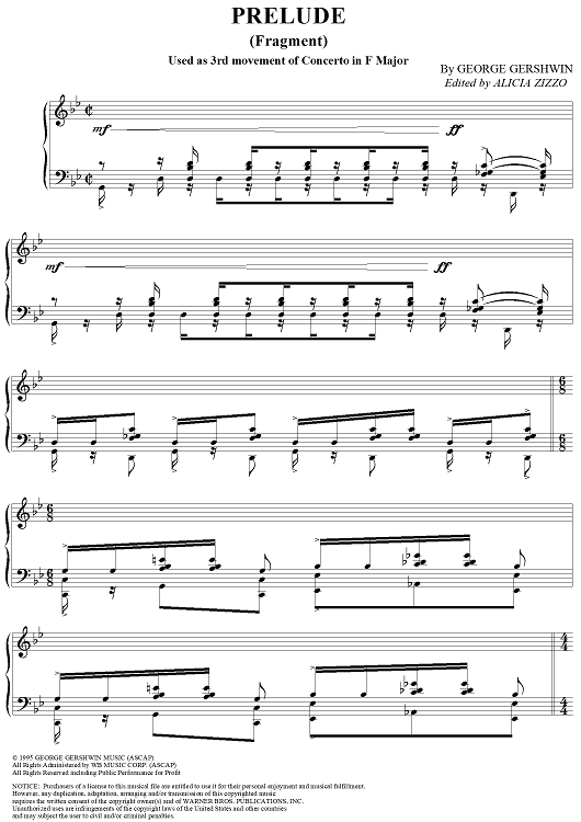 Digital Sheet Music for Prelude in G Minor by George Gershwin, Alicia Zizzo scored for Piano Solo; id:114315