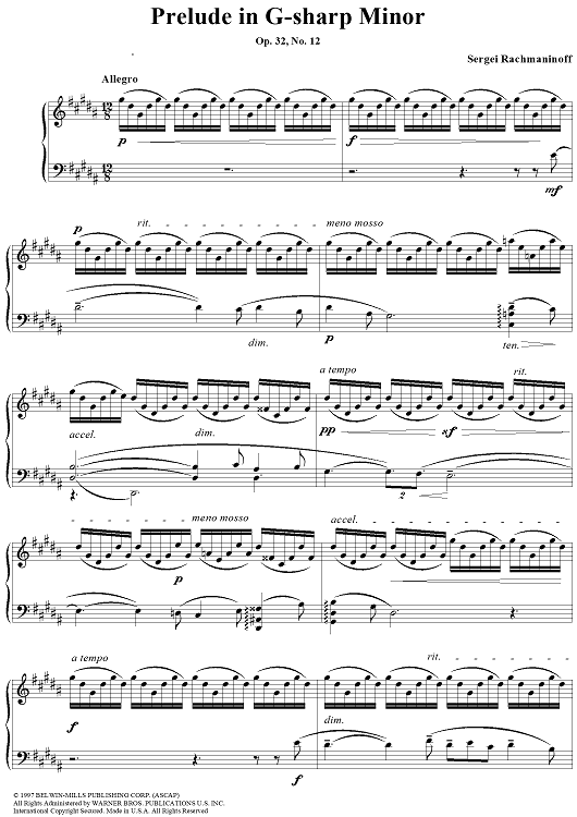 Digital Sheet Music for Prelude in G-sharp Minor, Op. 32, No. 12 by Sergei Rachmaninoff scored for Piano Solo; id:255176