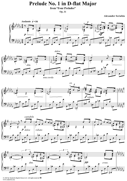 Digital Sheet Music for Prelude No. 1 in D-flat major by Alexander Scriabin scored for Piano Solo; id:311932