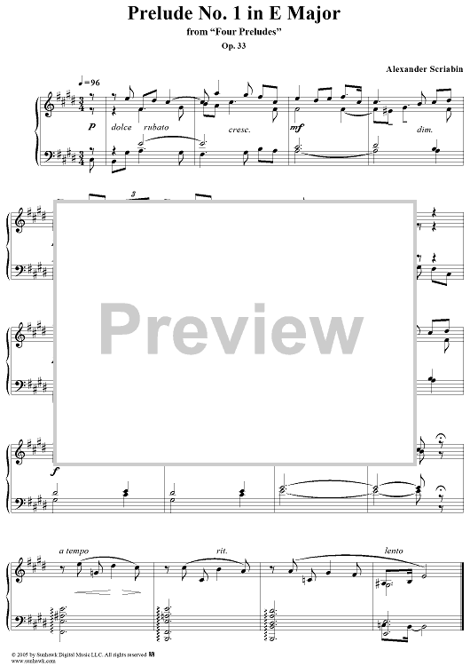 Digital Sheet Music for Prelude No. 1 in E major by Alexander Scriabin scored for Piano Solo; id:311936