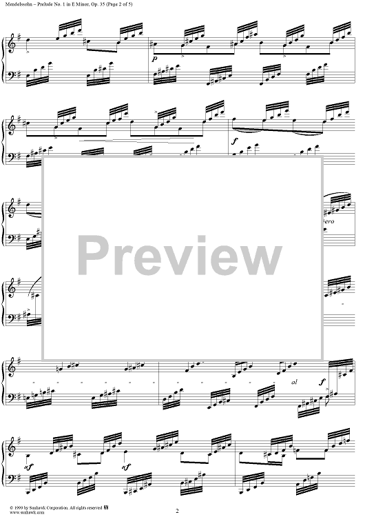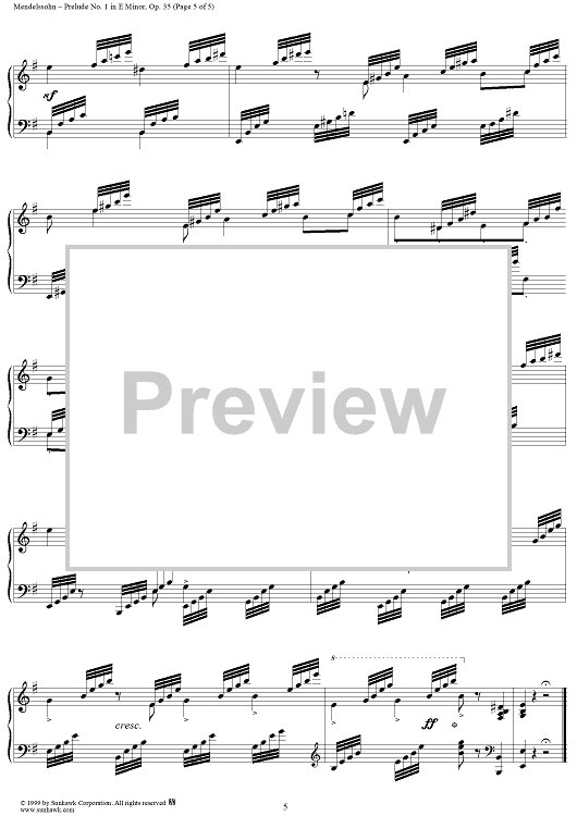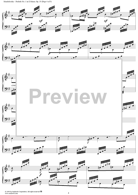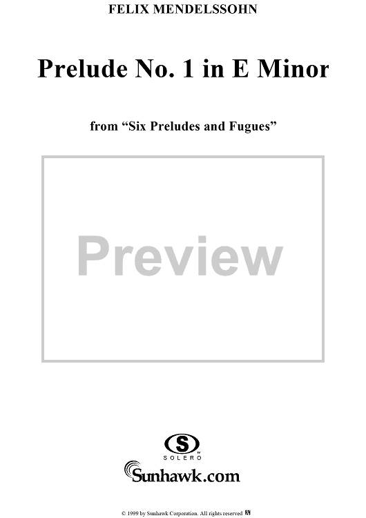 Digital Sheet Music for Prelude no. 1 in E minor by Felix Mendelssohn scored for Piano Solo; id:113365