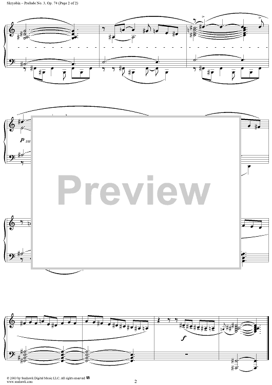 Digital Sheet Music for Prelude No. 3 "Allegro drammatico", Op. 74, No. 3 by Alexander Scriabin scored for Piano Solo; id:295412