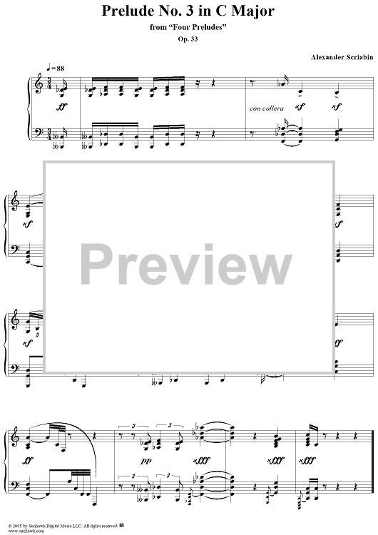 Digital Sheet Music for Prelude No. 3 in C major by Alexander Scriabin scored for Piano Solo; id:311938